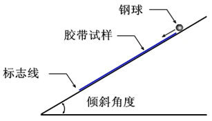 采用斜面滚球法,通过钢球和压敏胶带试样粘性面之间以微小压力发生短暂接触时,胶粘带对钢球的粘附作用来测试试样初粘性。